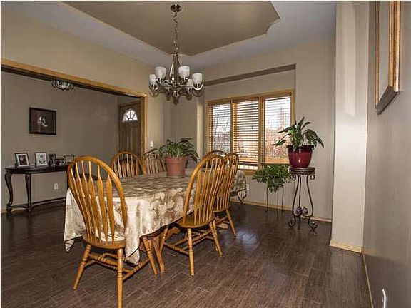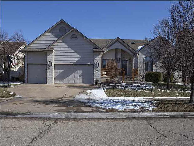 Fabulous ranch style home in west Wichita with over 1800 sq. ft. on main floor and 1500 fin. sq. ft. in viewout/walkout basement. Total of 5 bedrooms plus an additional room noted as the "exercise room" in bsmt. partially finished with drop down ceiling only, floor mats do not stay. Open floor plan with new tile floors (resembles wood) throughout entry, dining room, kitchen and laundry. Huge 5x12 main floor laundry. Breakfast nook in kitchen with door leading to covered wood deck. Lg. eat in kitchen features island and ample cabinet space. 1 yr. new carpet on main floor. Interior features include 10 ft. ceilings, 2 gas fireplaces & skylight in main floor hall bath. Master suite with bath offers double sinks, walk-in closet, whirlpool tub and separate shower. Garage is fully insulated and sheetrocked with 220 elec. and 2 garage door openers. Private backyard with no one behind you. 5th bedroom in basement has daylight window. Yard includes sprinkler system and well. Walking distance from St. Elizabeth Ann Seton school. No special taxes!