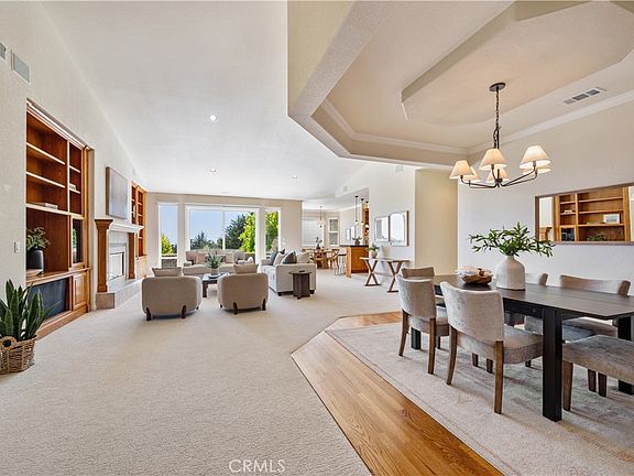 The kitchen is equipped with granite countertops, a center island, dual sinks, a walk-in pantry, and a wine refrigerator—with plenty of counter space for the home chef. Recent upgrades include new carpeting and updated light fixtures throughout, adding to the home’s fresh, move-in-ready appeal.