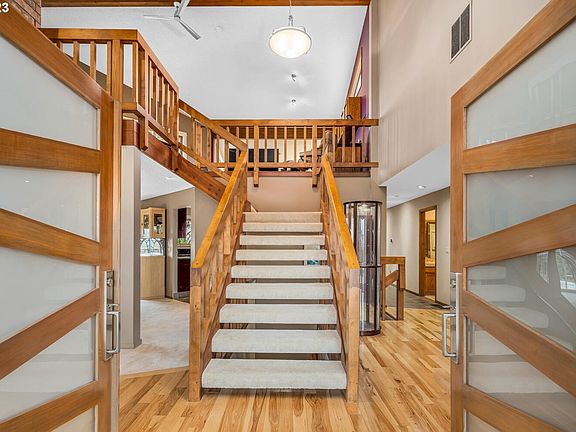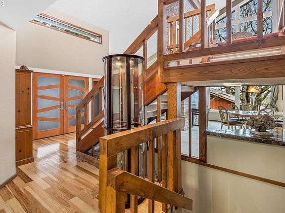 A magnificent dream home with breathtaking river & city views. Offering a main floor primary suite, five bedrooms, + a lower-level walkout basement. The loft, gourmet kitchen, built-in bars + view-capturing decks make this an entertainer's dream home. Cedar siding + a lifetime metal roof ensure durability & longevity. The large .35-acre private lot offers ample privacy, with a sparkling waterfall & pond, an oasis close to PDX & the new waterfront. Located in the Father Blanchet neighborhood.
