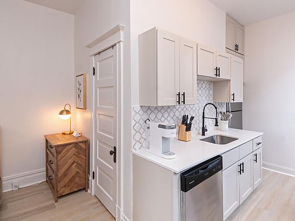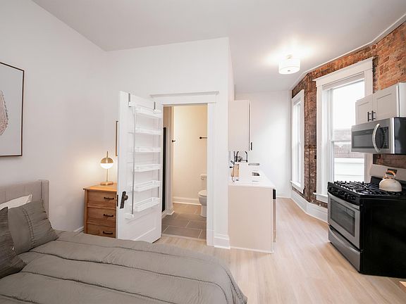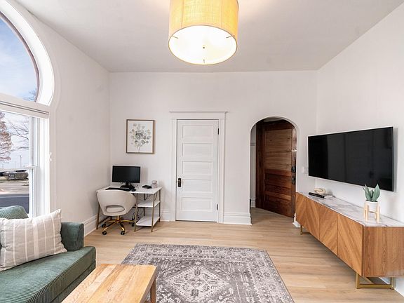 This is a beautifully designed, decorated, and furnished studio apartment on the first floor of a two-story 8-unit apartment building. It is 0.2 miles from downtown Saint Joseph, 0.7 miles from Silver Beach, and 1.6 miles from Lakeland Medical Center. The front room is a large space featuring the living area with a sectional, chair, and 55 inch 4K Smart TV as well as a desk with a monitor and docking station for a laptop. The kitchen has quartz countertops, full size stainless steel appliances including a dishwasher, and plenty of storage space. There is also a built-in banquette for dining. The updated bathroom has a shower without a bathtub. There is also a quiet alcove with a queen sized bed and dresser. The unit has a lot of original 1902 character including 10 foot ceilings, large windows, some original exposed brick walls, and large trim work and moldings. It also has been recently renovated including new plumbing, electrical, and heating. We have taken a lot of care in designing, decorating, and furnishing the unit to provide a comfortable and enjoyable place for your midterm or long-term stay! Book now and be steps from downtown St. Joseph and the shores of Lake Michigan! $1,875 includes rent (fully furnished), parking, water/sewer, gas, electric, cable, high speed internet with WiFi, trash, and recycling. No pets. No smoking. Minimum lease term 31 days.