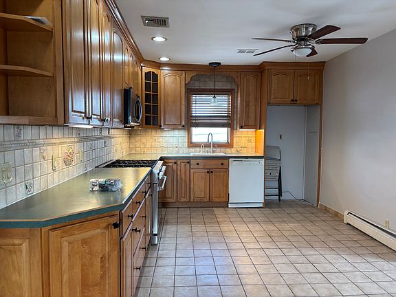 Freshly painted apartment, with new carpeting installed, large living room with custom made bar and large kitchen. Large Master Bedroom with bathroom. 2 additional bedrooms with an additional 1/2 room that can be used for office. Lots of storage including attic and basement. Sliding door to balcony with great view to NYC. Use of extra-large shared backyard with 2 off street parking spots. Local access to all major highways. (Rt. 3,17,21, GSP & NJ Turnpike & 2 train stations). Owner will replace existing balcony deck in spring, 2025. Renter pays all utilities including water. NO PETS, NO SMOKING, Newly painted apartment, renter cannot repaint.