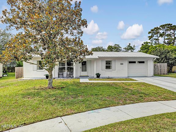Welcome to 822 Valnera Ct., a beautifully renovated 3-bedroom, 2-bath concrete block home located in the highly desirable St. Augustine Shores community. This cottage-style gem perfectly blends timeless charm with modern updates-making it an ideal choice for homeowners, investors, or anyone seeking a laid-back Florida lifestyle. Step inside to discover a warm and inviting interior with rich wood-toned luxury vinyl plank flooring throughout. The thoughtful renovation preserves the home's original character while introducing stylish upgrades designed for everyday comfort. Enjoy peace of mind with major updates already done: a metal roof and AC system just 7 years old, plus a brand-new tankless water heater for on-demand efficiency. The oversized garage offers generous space for storage, hobbies, or a workshop, while the fully fenced backyard provides a private retreat—perfect for pets, play, or entertaining. A standout feature of St. Augustine Shores is its no rental restrictionsallowing for both short- and long-term rentals. Whether you're looking for a full-time residence, seasonal getaway, or income-generating property, this home offers unmatched versatility.