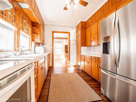 Welcome home to this charming bungalow! Enjoy original details throughout, like a formal dining room with glass French doors and a spacious living room with a cozy fireplace. The galley-style kitchen has tons of cabinetry, while the solarium offers banks of windows to bask in natural light. With two main floor bedrooms, an updated bath with tiled shower, and main floor laundry on the back porch, you'll have everything you need on one level. Plus, there's more living space downstairs as well. This home does need some projects completed such as exterior updates, foundation repair, cosmetic updates; but it is priced accordingly so you can enjoy all its potential! Relax from the great deck overlooking the newer concrete parking & one car detached garage and large storage shed leading to a large back yard. 13 Mo HWA Platinum Home Warranty included!