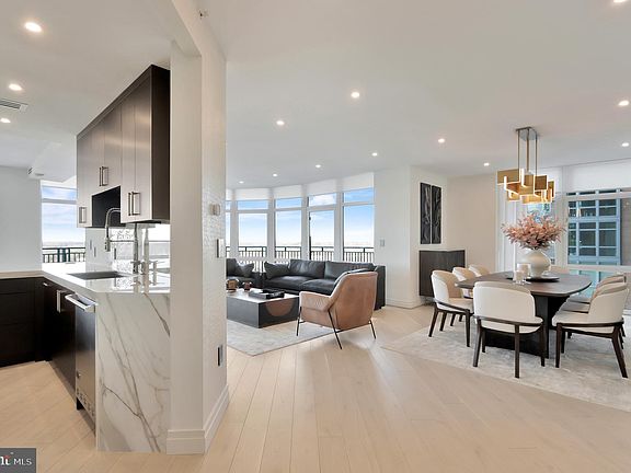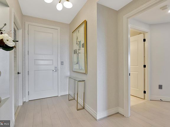 Now available - truly the most beautiful FULLY RENOVATED unit in One ParkCrest. As if sprung from the pages of of Architectural Digest, Unit 904 has just undergone a complete renovation. Kitchen was opened to create wide, open access from foyer and sitting room. The previous kitchen was gutted to make room for brand new custom cabinets from Canada, mitered Italian quartz countertops with waterfall, brand new Viking rangetop, new sink and faucet. Ceilings were dropped to allow for designer 3 inch LED recessed lighting throughout the living areas and kitchen. Old floors were replaced with stylish wide plank oak floors from Spain, in a light neutral stain. The living room is now graced with a linear electric fireplace with a built-out surround made of large slab Italian porcelain which adds so much warmth and atmosphere. AV hookup for 70 inch TV is above fireplace. Gorgeous high end designer lighting fixtures were added throughout the condo. The powder room was transformed with new fixtures, including a stunning modern pedestal sink from Germany, new Kohler toilet and faucets, lighting, and unique designer wallcovering. Both full baths have been made over as well with new smart toilets (incorporated bidets), gorgeous modern floating vanities from Canada with mitered quartz countertops, new lighting, sinks and shower faucets in Kohler's high end polished nickel finish. Imported neutral wallcoverings grace the entrance hall and dining room, as well as accent walls in each bedroom for added refinement. All door hardware and cabinet pulls were replaced with sleek knurled black and nickel levers from Emtek. All switches, dimmers, and outlets were also highly upgraded with the super stylish Legrand components. All new automatic shades were installed throughout to allow for full control with a touch of a button and further refined by custom silk drapes (decorative only) in the main living areas. This is one of the largest models in the building with a formal entry, separate sitting room off the large kitchen, spacious living and dining room with a huge window line aligning the wrap around balcony, powder room, and laundry room. The unit also conveys with two garage parking spots and a storage unit. The location of One ParkCrest is unbeatable – set in the heart of Tysons Corner with immediate access to the amenities of Tysons and the expanding Boro neighborhood, but also to the major arteries such as the 267 and 495. Although in Tysons, One ParkCrest is also set back in a quiet neighborhood with fabulous views, walkable to the Boro and the Spring Hill metro. The condo may also be purchased with the furniture under separate agreement. All furniture is brand new, recently purchased from Arhaus – and never used. Decorative and artwork are also available for sale. This is a must-see, unique unit for a sophisticated buyer who wants a fully and very elegantly renovated condo home without the inconvenience of doing the renovation themselves.