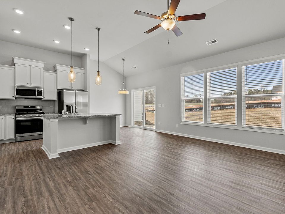 The Santee offers the perfect combination of style and function for your family. With a two-car garage, laundry room, and second/third bedrooms with spacious closets for storage - you have all that's needed to make new memories in this home! The vaulted ceilings in the kitchen and family room provide an impressive amount of light throughout while the outdoor living space is perfect for entertaining. And don't forget about those special touches in the main level primary suite like a walk-in closet, and ensuite bath with a double vanity, standing shower and linen closet. Beautiful, functional, and fitting- The Santee is designed for the way you live. Design selections featured in this home include: White kitchen cabinets, gray tile backsplash, Luna Pearl granite countertops, gas appliances, pendant lighting, and hardsurface flooring in Weathered Barnb. *Photos are of a similar finished home and some have been virtually staged.