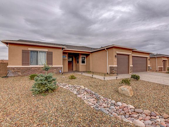 We are pleased to offer this beautifully upgraded Energy Star 2015 Harvest Moon - Country Cottage Elevation DORN home, in the Viewpoint North Subdivision in Beautiful Prescott Valley. The curb appeal will hit you first with the extended pavers for both driveway and walkway. This home features tile flooring throughout except for bedrooms. The open floor plan with 12' soaring ceilings make the home bright and airy. The kitchen with its large eat at granite island gives you a lot of space to bake, prep and still have sight of the living and outdoor area. The Travertine Back splash compliments the granite perfectly. Enjoy GE Stainless Steel Appliances; Gas Stove, Microwave This is a split floor with an extended master bedroom suite. The tiled master bath has that Spa feeling with a deep soaking tub, separate custom extended shower and a separate toilet room, dual vanity that runs the entire wall top the list of favorite features. The large walk in closet has tons of There are 3 other bedrooms on the other side of the living area. The middle bedroom is open and is presently used as an office & play room. The 3 car garage has room for everything & more! The ceiling shelves are handy and convey. This home is plumbed for a reverse osmosis and water softener. There is a security system in place. Even your pets will love the built in doggy door! This home checks all the boxes on your wants and wish list. Please see list in doc tab for upgrades included in this home!