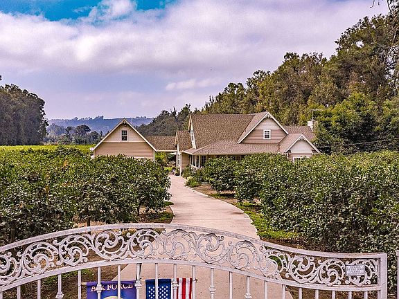11.77 acres of Organic Lemons, complements a beautiful 3/2.5 ranch home built in 1991, 9 ft. ceilings, new water heater, dining room and office with excellent Internet service +view of the outdoor covered porches for relaxed enjoyment of prime country living. RV setup with exterior 220 outlets and septic connection. Orchard has sprinkler irrigation system and quality, reasonably priced irrigation water provided by shares in the Berylwood Irrigation Water District. Domestic Service with V.C. District #19. Level topography provides multiple use benefits not found in parcels of 20 acres or more.Small tack and hay barn provides storage for animal supplies. Garage has a large loft for storage or extra studio.Amazing climate! Seeing is believing!!!