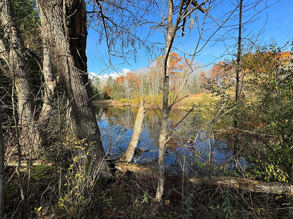 This peaceful and secluded 5.5 acre parcel is perfect for building your new home or cabin. There is a generous level location on the north side of the property which is already set up with a 30' x 40' pole barn with 220 service, concrete floors and a 9' garage door as well as an entry door to the side. The property slopes to the south with a large pond that is fed by Poscoba Creek with a runoff culvert under the driveway. There is a 1988, 14' x 76' Patriot mobile home on the property has only salvage value. The mobile home is currently serviced by well, septic and electric. Sellers have the title for the mobile home. Minutes from shopping, restaurant and recreation amenities at Hubbard Lake. Security cameras on property. Proof of funds or mortgage approval required for showing.