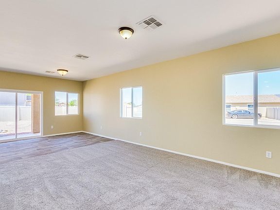 Fantastic 3 bed 2 bath KB built home with den & 2 car garage on a large corner lot. All new two tone interior paint. Open concept kitchen features laminate counter-tops, beautiful cabinets with plenty of storage space & built in pantry closet. Appliances include black gas range, range hood, & dishwasher. Spacious floor plan with plush new carpet & pad throughout living, den & all the bedrooms. New elegant wood looking vinyl flooring in kitchen, dining, laundry & bathrooms. Large master suite with 2 closets. Master bathroom features dual sink vanity & walk-in shower. Great curb appeal with easy care landscaping featuring decorative rock, shrubs & tree. Private back yard with covered patio, deco rock & mountain views. Home has solar panels. Move in ready, come see it today! Agent/Owner.