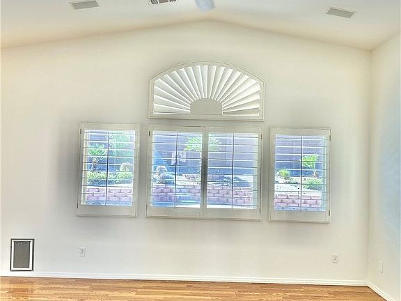 THIS GORGEOUS GATED SINGLE STORY FEELS HUGE!! THREE BEDROOMS PLUS A VERY SPACIOUS OFFICE/DEN THAT OVERLOOKS FRONT YARD. GORGEOUS VAULTED CEILINGS, HUGE GREAT ROOM, LARGE ISLAND KITCHEN WITH GRANITE, STAINLESS APPLIANCES, SHUTTERS THROUGHOUT, WOOD LOOK FLOORING!! LARGE BACK YARD WITH END-TO-END PATIO COVER! LARGE MAIN SUITE, DUAL SINKS, TALLER VANITY AND LARGE WALK IN CLOSET! SEPARATE SHOWER AND SOAKING TUB. ENCLOSED WATER CLOSET FOR MORE PRIVACY. TWO SETS OF SLIDERS TO THE BACK YARD (GREAT ROOM AND MAIN BEDROOM). CEILING FANS IN ALMOST EVERY ROOM. SECOND AND THIRD BEDROOMS ARE ON OTHER SIDE OF THE HOME FOR EXTRA PRIVACY. AN AWESOME FLOOR PLAN! IT FEELS HUGE! HUGE BACK YARD WITH LOW MAINTENANCE LANDSCAPING AND 3-TIERED PATIO COVER WITH END-TO-END CONCRETE DECK. MULTIPLE RETAINING WALLS GIVE THIS BACK YARD GREAT PERSONALITY AND POTENTIAL. LARGE PAVERED PATIO IN BACK YARD, AWESOME FOR OUTDOOR DINING! STORAGE SHED ONSIDE OF HOME INCLUDED. DIMENSIONS ESTIMATED. COME SEE!