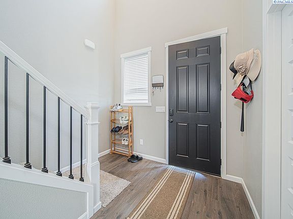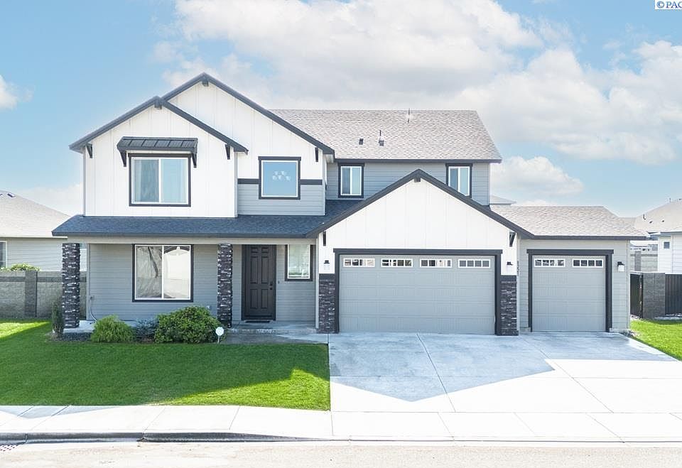 MLS# 275643 Built in 2022, this beautiful 5-bedroom 3- full bath home shows better than new!The main level features a large kitchen with new stainless steel appliances, a gas range with built-In Wall Oven, beautiful white painted cabinets, and Quartz Slab Countertop. It also boasts an oversized drop in farmhouse sink, a large island great for entertaining guests, under cabinet lighting and subway tile backsplash. From here you have access to the finished 3-car insulated garage, which has been converted into a home gym. The kitchen then opens up to a cozy living room complete with a modern linear style fireplace and large windows that flood the space with natural light. Downstairs you will also find a bedroom, a full bath and storage space under the stairs that can be used as a closet, or the perfect play area! From the kitchen you can also access the Huge 24ft by 10ft covered patio which features artificial turf on the concrete pad and a gas BBQ connection. Upstairs you will find an enormous master bedroom that features its own electric wall fireplace and a massive window. Beautiful ensuite master bathroom boasts dual vanities, separate tub and shower and large walk in closet. You will also find a linen closet, 3 more generously sized bedrooms, a full bathroom and the laundry room, featuring a large utility sink with white wood painted cabinets. Other amenities include;9ft Ceilings on the Main floor, Open Stairwell, Stained Cabinets, Quartz Slab Countertops in Kitchen and Master and Lower Level Baths, Full Height 3 by 6-inch Subway Style Backsplash, Laminate Plank Flooring throughout open areas, insulated garage doors, metal gates and wall fence for added privacy.This home shows like a model and is nestled in one of West Richlands fastest growing locations with easy access to commuter routes. This community offers miles of walking trails and a 7-acre park which includes play structures, basketball courts and a soccer field.