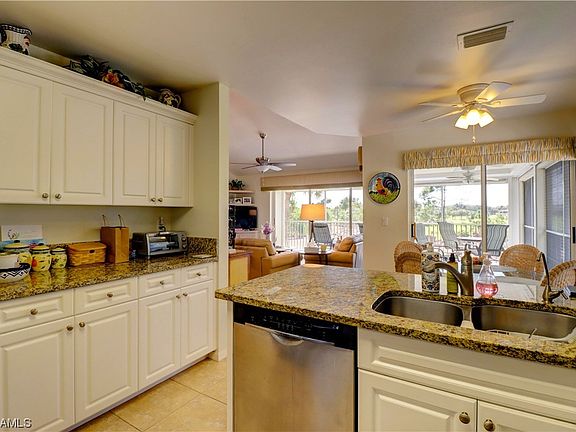 The home is tastefully decorated, just waiting for the new owners.  Lanai with a southern view overlooking the water and The Estero Clubhouse in the background.  Granite Kitchen, with Tile Flooring.  Community Pool is just