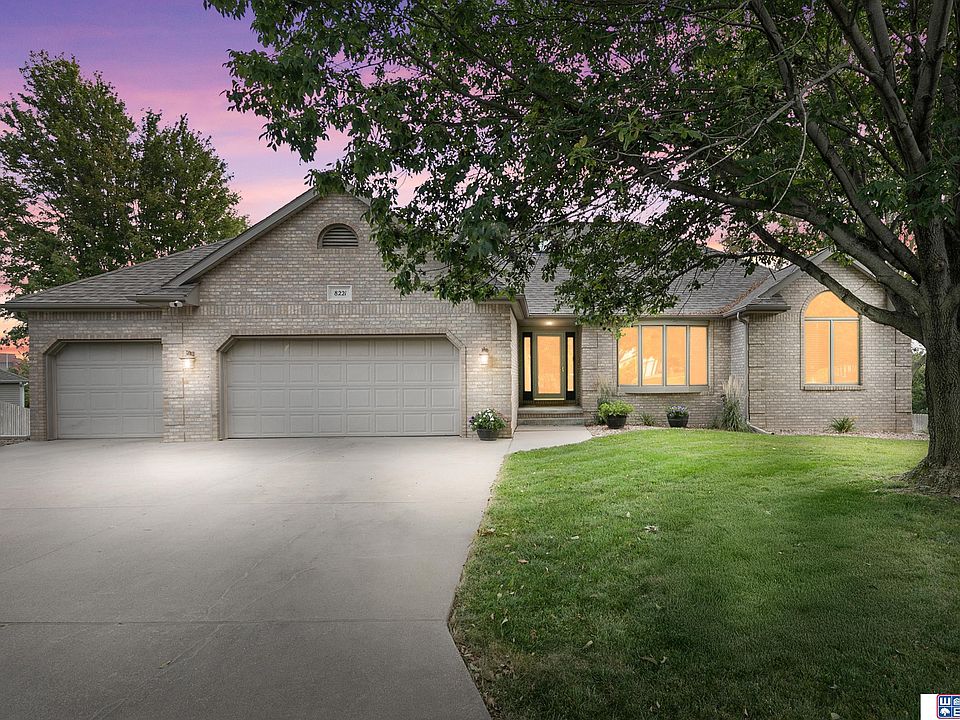 Here is a fantastic large walkout ranch home in a super Lincoln location. Welcome to 8221 Knoll View Ct on a big cul-de-sac lot. The 3 car garage provides lots of space for cars and toys. Enter to a welcoming foyer which highlights the big living room with vaulted ceilings and an updated fireplace. The main floor has a big office, Primary suite w/jetted tub, double sink vanity, shower, also full hall bath, and second bedroom on main. The owners removed a wall to open the living/dining room to the amazing kitchen it is now. Your guests will love sitting around the oversized breakfast bar. There's a main floor laundry with 1/2 bath also on the main floor. Entertaining is so much fun with the huge, covered deck overlooking the treed, private backyard. The LL has a wet bar w/space for a full fridge, pool table area, tv area, two big bedrooms, full bath, AND an exercise room with "Masters Green" turf, plus LOTS of storage.