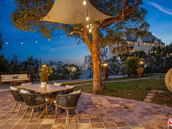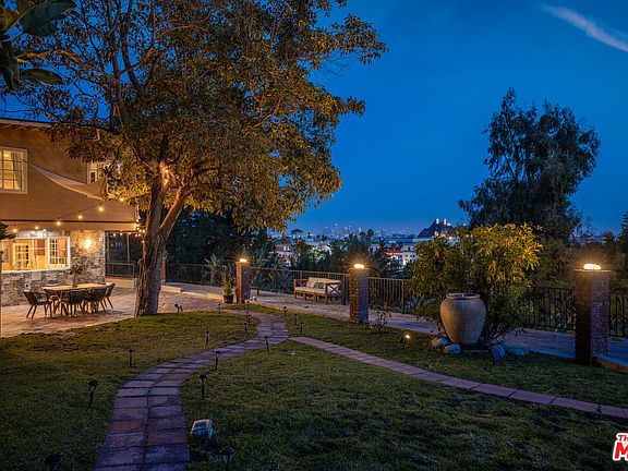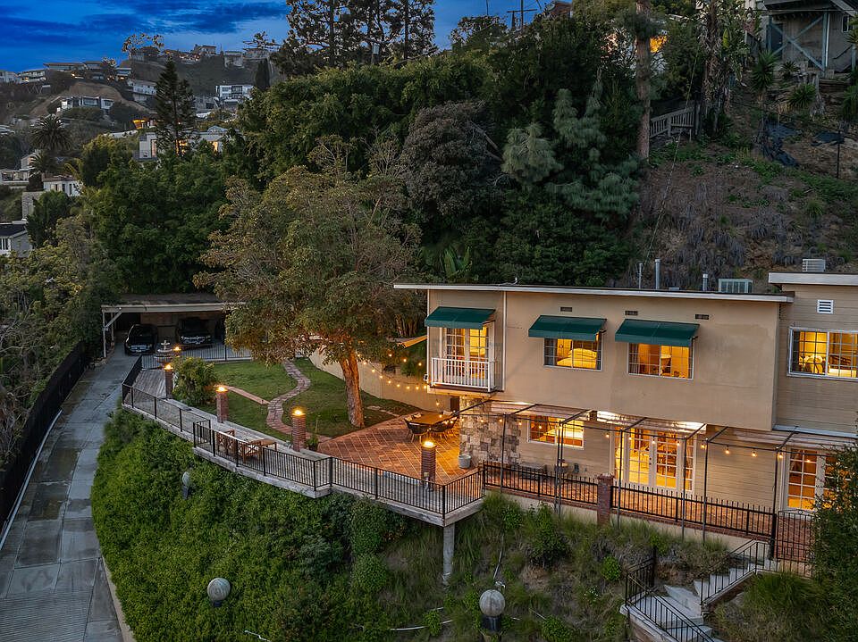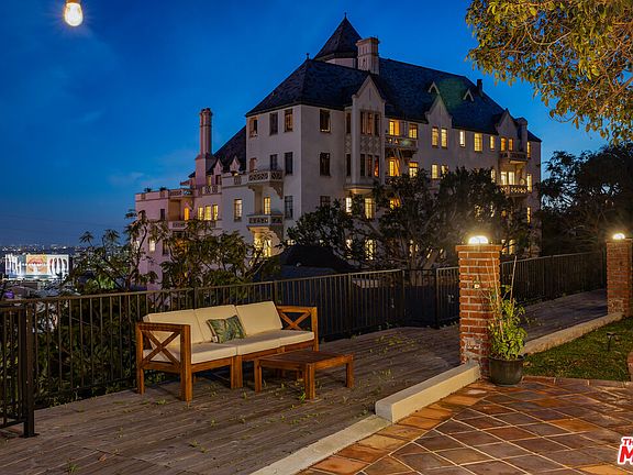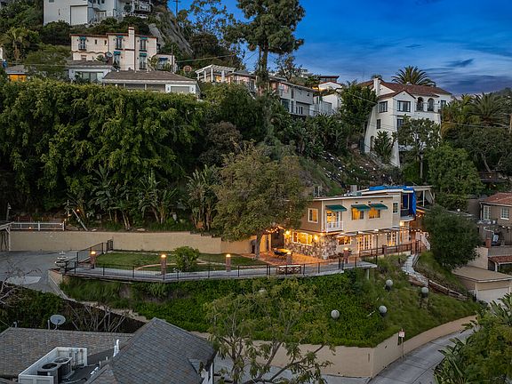 Perched on a beautiful lot above the iconic Chateau Marmont, this splendidly proportioned two-bedroom home is primed for both comfortable living and exceptional entertaining. The expansive, sunlit living room is framed by paned French doors that open seamlessly to the deck, while the dining room boasts dual built-in wine storage areas perfect for the collector or entertainer. The chef's kitchen features wood countertops, stainless steel appliances including double ovens and two dishwashers, and a large central island for gatherings. Upstairs, two master-sized bedrooms each offer en-suite bathrooms with luxurious soaking tubs; one enjoys a private deck with sweeping views. Outside, the home's bohemian spirit shines. A one-of-a-kind outdoor entertaining area is artfully designed with a gallery of mirrors, soaring sails, and expansive decks that capture vistas stretching from Downtown Los Angeles to the Westside. With a 2-car garage and the rare opportunity to acquire the adjoining lot together totaling over 14,000 square feet this offering presents the chance to create an iconic double-lot compound. Architectural plans by renowned Japanese architect group OSO envision a world-class oasis, making this a builder's dream in a location that is nothing short of legendary. In addition to being a spectacular primary residence, the property also functions as an outstanding rental or Airbnb opportunity, with its iconic location, flexible entertaining spaces, and furnished turnkey appeal.