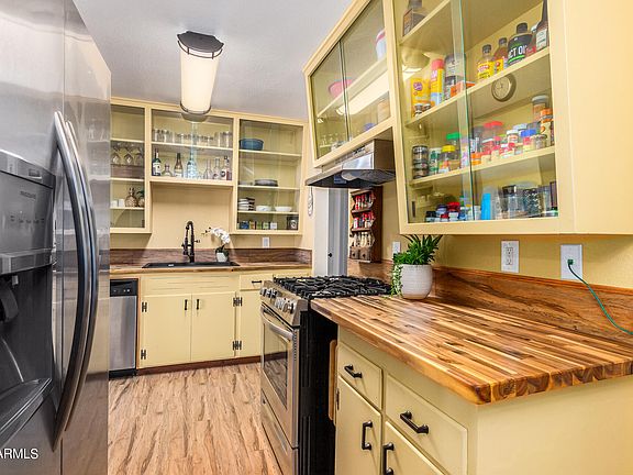 Valley under 30-40 min away. Don't miss this unique, extremely rare Golden Opportunity in this area! Mid-Century Modern glass cabinet kitchen, custom covered patio, RV gate, irrigation, mtn views from your backyard oasis.