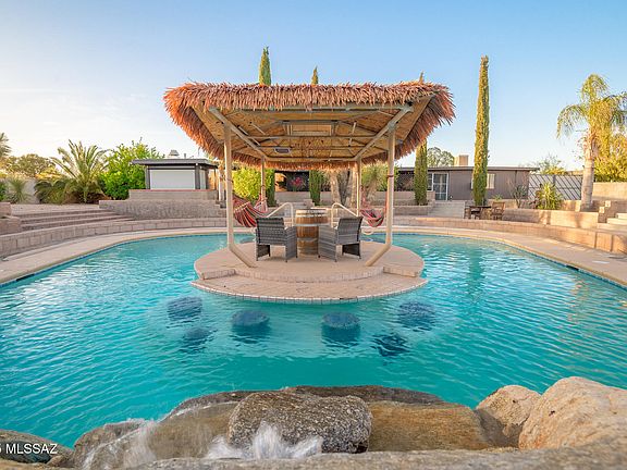 Love entertaining outdoors? This Casas Adobes ranch-style gem on nearly an acre is your dream come true! Featuring a private well (a huge perk for the pool and in-ground spa), this 3BD/2BA home offers a resort-style backyard with a U-shaped pool, fun island cabana with water feature, Arizona room with spa, and Catalina Mountain views. The lush landscaping includes citrus trees, and there's plenty of space for RV parking, recreational toys, or even adding a guest house or detached garage--with no HOA! Inside, you'll find a perfect blend of character and contemporary updates. The workshop is ideal for tools, toys, tinkering and storage. Whether hosting pool parties, relaxing under the stars, or enjoying peaceful desert mornings, this property offers a lifestyle you'll love coming home to.