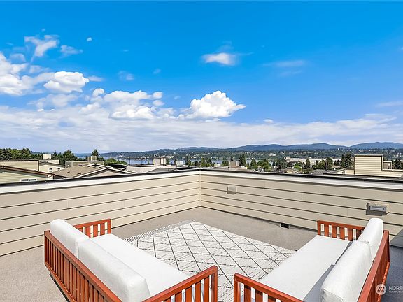 Don't miss these VIEWS of Lake Washington from your private ROOFTOP DECK! This 4 bed + office home features a massive Primary with 5 piece en-suite and a Jr. Suite with 3/4 bath on the entry level! Perfect for loved ones and friends to spend the evening. Your main floor living boasts a fully updated kitchen with all SS appliances, quartz counters and LVP flooring + huge dining space and open great room for entertaining. Out back you'll find a quaint court yard appeal, while out front you'll find a full length balcony to enjoy! Upstairs there are 2 additional bedrooms + the primary, in addition to a large utility room. The last set of stairs will lead you to a quite morning coffee's or eventful cocktail hours with an 180 degree view!
