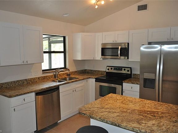 Nicely updated San Carlos Home. New kitchen cabinets with granite countertops. New bathroom vanities and toilets. Tile living room, kitchen, and dining area. New carpet in bedrooms. Stainless steel appliances. Fenced in backyard. Newer A/C and water heater. Water system just serviced. No Hurricane Irma damage. Great area at a great price.