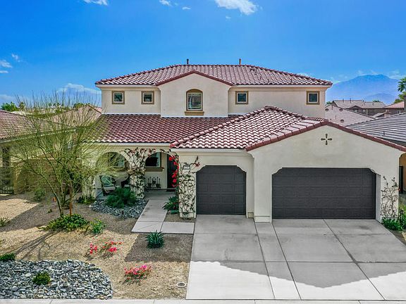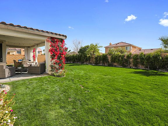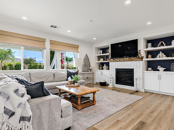 Fantastic home with $80k in builder upgrades built by Monroe Living (not Lennar) and over $30k in landscaping, pavers, custom lighting, window coverings and more. From the moment you walk in you will feel right at home. The open floor plan and bay windows overlook the covered back patio and yard giving you a warm and inviting feel. This home is light and bright and has a great indoor/outdoor feel which the desert is known for. The chef will love the kitchen and large island that is great for entertaining with family and friends. Other notable features include an accented fireplace with a custom mantel, amazing views from the master and bedrooms plus upgraded appliances. Laundry room with utility sink, a large linen closet plus an oversized 3 car garage with a mini split, epoxy flooring and room for extra storage. This home meets title 24 specification so it is very energy efficient. Come experience this home yourself, you will not be disappointed.