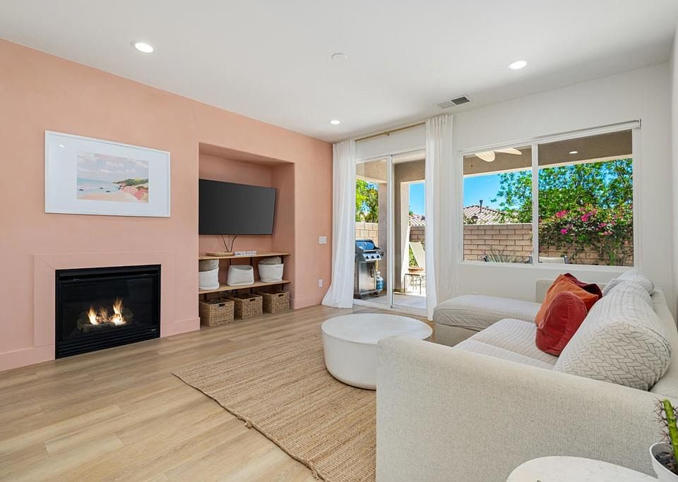 Welcome to effortless desert luxury in this impeccably appointed, SHORT-TERM rental-friendly residence located within the prestigious Indian Palms Country Club.Set on a generous corner lot just moments from the world-renowned Empire Polo Grounds, this turnkey 3-bedroom, 3-bathroom home offers 1,796 sq ft of refined living space that seamlessly blends style, comfort, and functionality.The thoughtfully designed open-concept layout is complemented by newly installed luxury vinyl plank flooring, smooth skim-coated walls, limewash accents, and upgraded LED recessed lighting throughout. The living room is both inviting and stylish, enhanced by custom floating shelves and a cozy fireplace, while large windows invite an abundance of natural light to flow through the home.The gourmet kitchen is a culinary dream, featuring sleek cabinetry, double ovens, a new dishwasher, and a bar-height counter--perfect for entertaining. The spacious primary suite is a peaceful retreat with a spa-like en-suite bath, dual vanities, and a walk-in closet. A private guest casita with its own entrance, full bath, and new AC offers ideal accommodations for visitors or lucrative rental opportunities.Step outside to your private patio, perfect for alfresco dining and relaxing under the desert stars. The home also includes a new washer and dryer and has been beautifully furnished to offer a true turnkey experience.Residents enjoy access to a wealth of amenities, including 27 holes of championship golf, a fitness center, resort-style pools and spas, tennis and pickleball courts, and a full-service clubhouse--all within a guard-gated community.Whether you're seeking a primary residence, seasonal retreat, or an income-producing investment, this home delivers on every level. Live where others vacation--luxury, location, and lifestyle await.***This property is currently a successful vacation rental with 116 Reviews and 4.86 Stars.