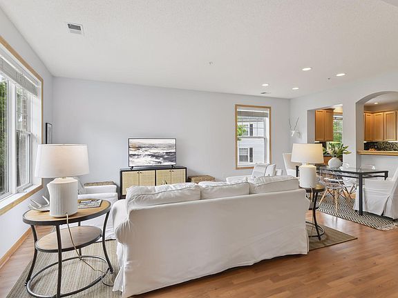 SHOWINGS START AT 1PM ON WED, 6/7. Rare and sought after Golden Valley 3 bedroom/3 bath end unit townhome. . This perfectly located townhome is within walking distance to restaurants and shopping. This beautiful unit faces the courtyard versus Golden Valley Rd. As you enter the townhome, you walk through a lilac hedge that wraps around your own private patio. The spacious open floor plan is flooded with light. The oversized foyer opens to a large living room/dining room space with hardwood flooring. The kitchen is very spacious and features an abundance of cabinetry, granite counters, stainless appliances, and a breakfast bar. The back entry has a 1/2 bath and connects to the heated underground 2 car garage space. The 2nd floor features a lovely primary suite that overlooks the courtyard as well as a renovated 3/4 private bath and a walk-in closet. 2 additional bedrooms, a full bath, and upper level laundry complete this floor.