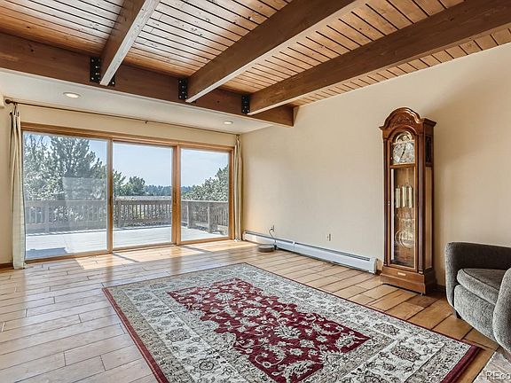 Updated home on over 1/2 acre in The Pinery. When entering the home you can not help but notice the amazing mountain views. 2 sets of patio doors invite you to the maintenance free Trex deck with breathtaking views of Pike’s Peak. Open floor plan with exposed wood ceilings and tons of natural lighting. Remodeled kitchen featuring granite counters and soft close cabinets opens to the dining area and family room. Upstairs you will find a large primary suite with an updated bathroom and private deck perfect for enjoying your morning coffee. 2 additional bedrooms + den and a second completely updated bathroom complete this level. Full finished walk-out basement includes a large recreation room and wet bar plus an additional bedroom and bathroom. Cirlce driveway allows for extra parking of at least 4-6 cars. See supplements for full list of recent updates. Updates include but are not limited to - both upstairs bathrooms completely remodeled, carpet throughout, siding, and water heater. Garage includes a 220v socket for electric car charging. Floorplan available in supplements.