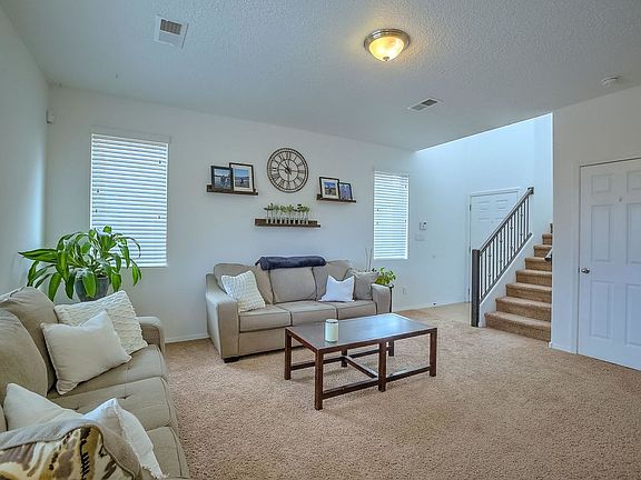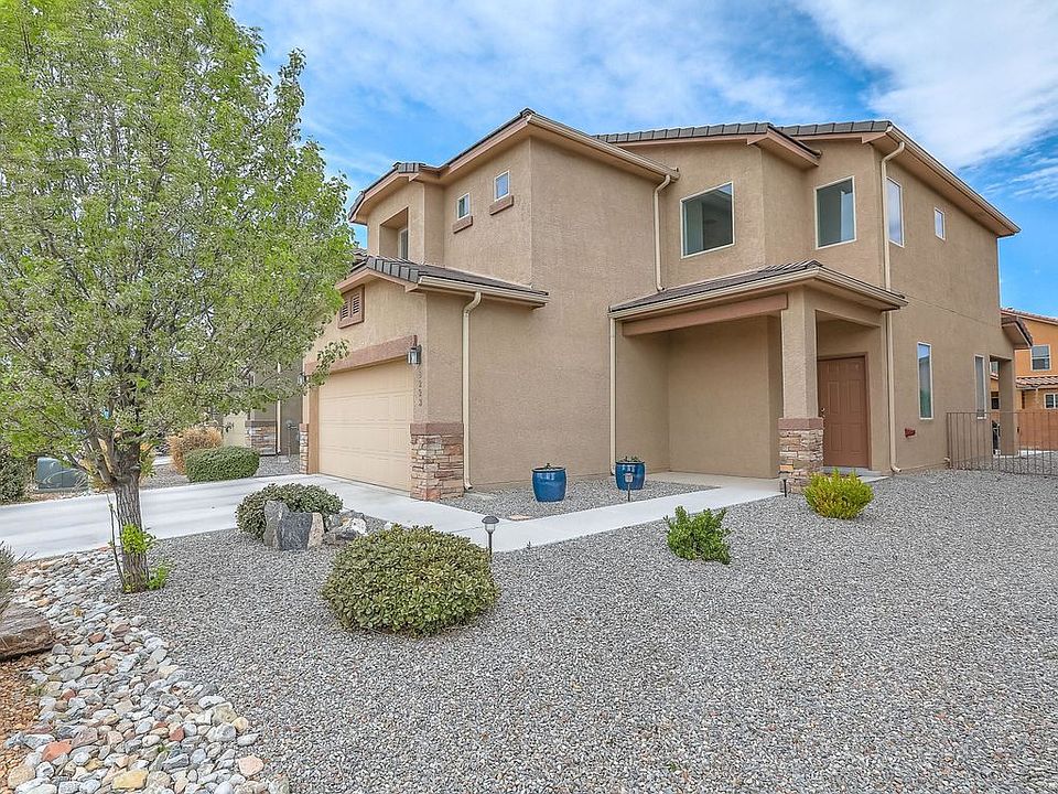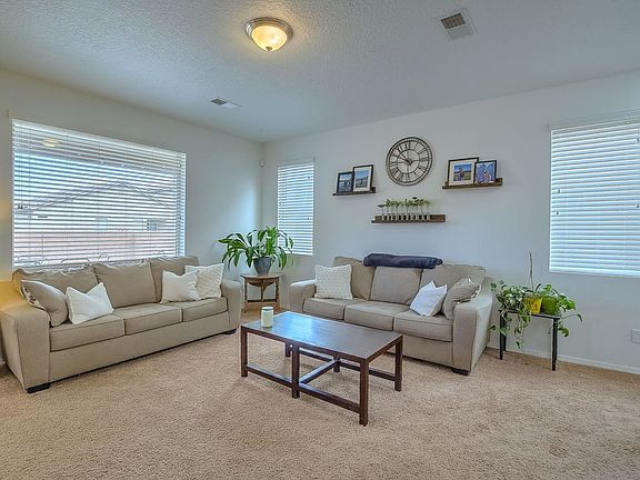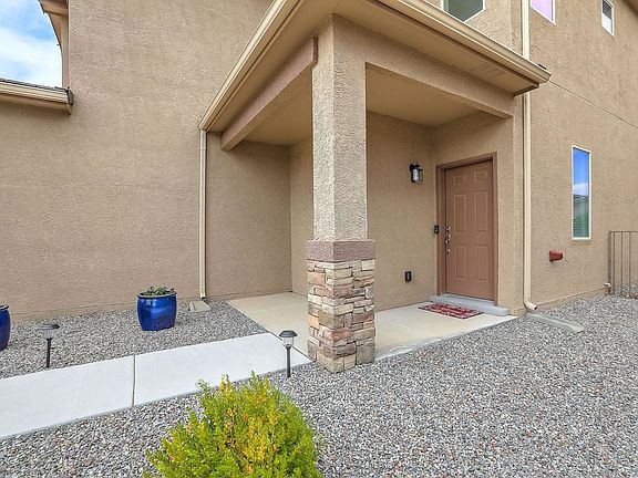 Montecito Estates at its best with this Beautiful DR Horton home. The Kitchen with Gorgeous Cabinets, Stainless Appliances and a Huge Pantry you will love. The Large Master Bedroom a place to Retreat to with its Garden Tub and large walk-in closet. The backyard has View of the Mountains & the Petroglyphs with a large recently extended patio and planter boxes. In front is a covered porch and Walking Trails directly across the street. This Dr Horton Auburn model has a Build Green NM Silver Level construction. Owners have access to the private community swimming pool, clubhouse, playgrounds, parks and open space. Easy access to desirable schools, sports fields, CNM, shopping and dining. Refrigerated air.