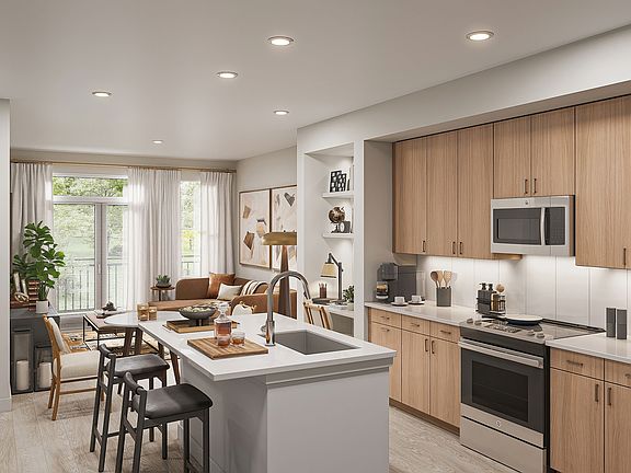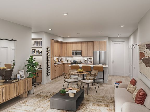 - Exterior features: 9-10' ceilings, Barbecue, Bicycle storage, Business Center, Dedicated den/study spaces*, Dual vanities*, EV charging stations, Elegant lobby with cathedral ceilings, Exterior Type: Conventional, One, two, and three bedroom residences, Package Receiving, PetsAllowed, Pickleball court, Private patios and balconies**, Private yards*, Programmable thermostats, Quartz countertops, Separate tub and shower options*, Smart-home entry locks, Spacious 42' upper cabinets, Stain chrome fixtures, Stainless steel appliances, Stylish under-cabinet lighting, TV Lounge, Tile backsplash in kitchen, USB ports, Wood-style flooring throughout