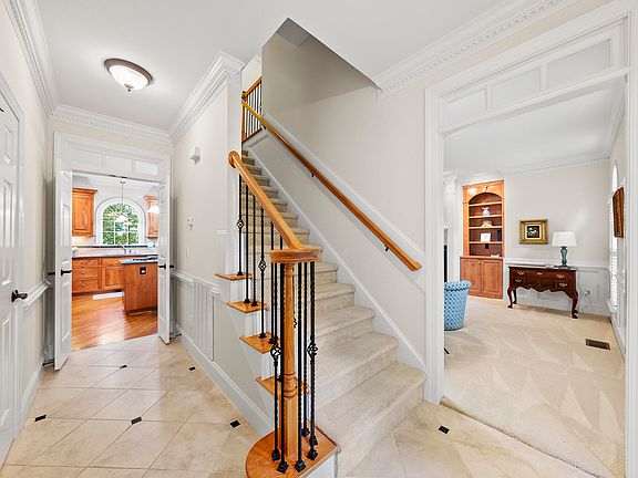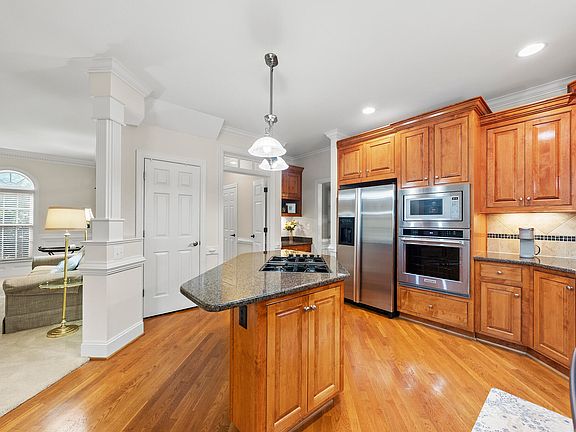 Stunning 4-bedroom brick home, on a beautifully landscaped corner lot, is found in the highly desirable Old Stone Crossing, Northwest Raleigh, subdivision. Open concept floor plan allows easy flow throughout the first floor including to the separate office/study and dining rooms. Crown dental molding, tray ceiling and built-ins are custom touches that impress. New gorgeous all-season porch extends the kitchen and is a perfect retreat for morning coffee and evening relaxation. Kitchen oven, and dishwasher have been recently replaced. Luxurious, generously sized primary bedroom presents a serene setting with dual vanity large bathroom, soaker tub, and walk-in closet and a seating nook with built-in bookshelves. Massive bonus room offers a flexible space for everyone. The 1st floor guest bedroom is easily accessible with wide doorways and offers a walk-in closet. Ample storage with walk-in closets, built-ins, bonus room closet and walk-up attic. Side entry 3 car garage has an adjoining workshop, utility sink and driveway with an additional parking space. Other updates include: New roof 2019; New HVAC systems one in 2023 and other in 2024. Conveniently located to Umstead Park, Crabtree Creek Greenway, RDU airport, RTP, major highways, entertainment, Lenovo Center, downtown, hospital, and shopping. Meticulously maintained, freshly painted and move in ready!