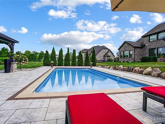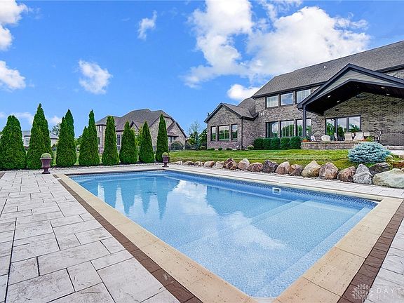 Enjoy those summer days in the luxurious outdoor living and heated pool! Gorgeous, open floor plan with a first floor primary suite, double vanities, soaking tub, oversized shower and huge walk in closet! The great room offers coffered ceilings, tons of windows and is open to the the kitchen and dining areas. The kitchen offers stainless steel appliances, pantry and a huge island for entertaining. A convenient 1st floor laundry along with a mud room with built ins. Beautiful hardwood floors, full finished lower level with wet bar, rec and media rooms. The 2nd floor offers 3 generous bedrooms, hall bath, jack n jill bath along with a huge loft/living room area. 1.21 acres of lush landscaping, lot goes well beyond the fenced area. Located between Dayton & Cincinnati, Clearcreek Twp....No City Taxes in sought after Country Brook. The premier neighborhood in Springboro!This home is an absolute "10" and will not last long!