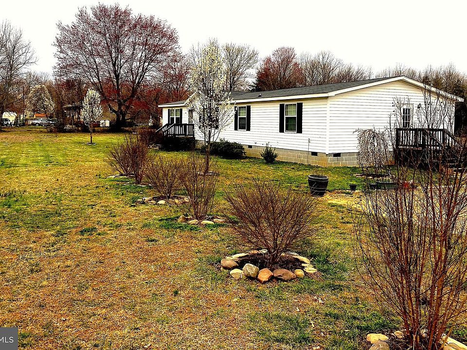 Affordable home in the country. Enjoy one-level living in this 3 bedroom 2 bath ranch-style home built in 2014. The home is situated on 2 usable acres perfect for gatherings. The inside boast an open floor plan with a large county kitchen as the focal point. The large island has seating for 4 and perfect for meals or family gatherings. The kitchen flows into a large family room and a living room. Two bedrooms are directly off the family room with full bathroom located between. The master bedroom has a large on-suite master bathroom with double sinks, a soaking tub, separate shower stall and a walk in closet.