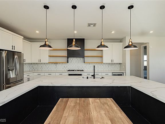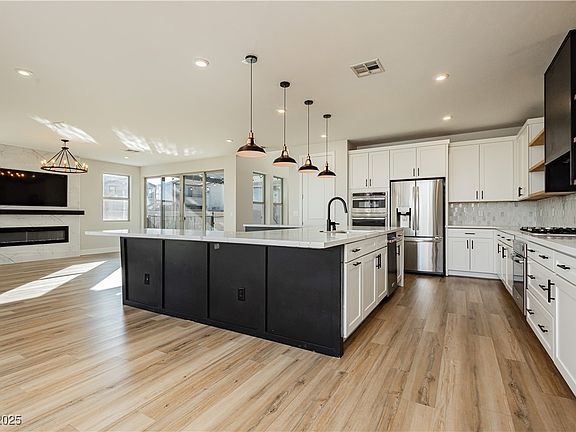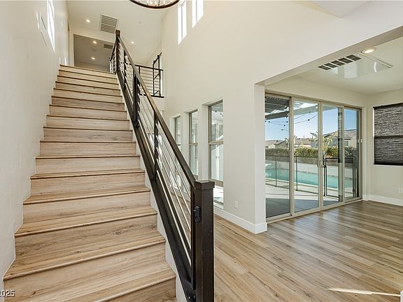 Welcome to this exquisite home situated on a spacious corner lot, offering breathtaking strip views that you’ll enjoy year-round. Designed for both luxury and comfort, this property features a custom kitchen island, perfect for culinary creations and entertaining guests. The open floor plan seamlessly connects the living spaces, enhanced by multiple double glass sliders that combine the indoor and outdoor living areas, creating a harmonious flow throughout.