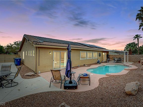 Welcome to 8225 Dusty Valley Ct, a rare single-story ranch-style home in the gated Tule Springs Ranch South community of Centennial Hills. Featuring 3 bedrooms, 2 baths, and 2,136 sq. ft. on a spacious cul-de-sac lot, this home offers open living with a cozy fireplace, stylish tile finishes, and included appliances. The backyard is a true retreat with a sparkling pool, desert landscaping, and RV parking with gated access, while the front courtyard adds charm and privacy. Built in 2001 and well maintained, the property also includes a 2-car garage, access to a community park, and convenient proximity to freeways, shopping, and top-rated schools—making it the perfect blend of comfort, convenience, and lifestyle.