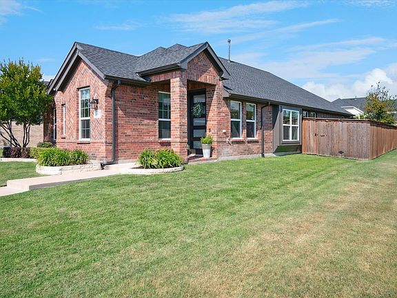 Home with UPDATES GALORE on oversized corner lot in Trinity Falls, a master-planned community with pools, clubhouses, hike and bike trails, playgrounds, lakes, dog park, and more! The home offers beautiful design finishes and colors, 10 ft. ceilings, and open-concept floor plan that makes sense. Lots of windows bathe the house in natural lighting. You will love living in this home! Front entry leads to the main areas of the home; kitchen, dining room, and living room. Split floor plan – the primary bedroom is at the back of the house. Walk through the primary bedroom to the big, ensuite bathroom with natural lighting, dual sinks, and expansive glass-enclosed, tiled shower with bench. Primary bathroom is connected to the oversized closet with extra electrical outlets, and through the closet to the utility room. Utility room is connected to the kitchen. Easy! Kitchen features include walk-in pantry, quartz countertops, glass tile backsplash, extended upper cabinets and extra uppers with glass display doors – oversized island with extra cabinets – pendant lights - under-cabinet lighting – refrigerator cabinet with massive storage – pullout trash and recycle drawer – self-closing drawers – pots and pans drawers – Whirlpool gas cook top, oven, dishwasher and vented microwave - 9” deep under mount sink with garbage disposal and Moen stainless steel faucet with pull down vegetable sprayer. There’s more! Moen chrome plumbing fixtures in all bathrooms. Satin nickel finish door hardware. Top-down, bottom-up window shades; blackout shades in bedrooms. Recessed-style LED light fixtures in kitchen and living room. Ceiling fans with remote controls. Plentiful closets with extra electrical outlets. Wiring for security and surround sound speakers. Natural gas furnace and 16 SEER AC and fresh air circulation. 2-car rear-entry garage connected at the back of the house with a breezeway and patio and security cameras. Big garage with dedicated outlet for refrigerator or freezer.