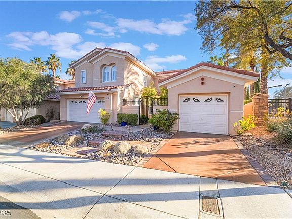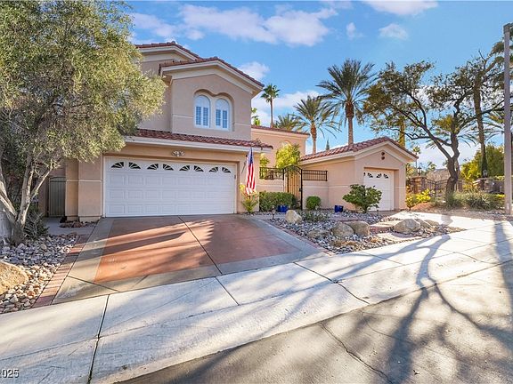 Beautiful 5 bedroom, 5 bath home in a desired gated Summerlin subdivision. The home features a split 3 car garage with a private iron gated courtyard at the front entry way, a spacious kitchen with granite countertops and a stove top island, upgraded bidet toilets, and a converted den area on the first floor. Enjoy soaking up some sun or stargazing on the balcony attached to the master, which also includes an upgraded luxury bathroom complete with a Japanese soaking tub. For warm Vegas days, the pool is a perfect addition to the backyard- new pump recently installed in addition to one new HVAC unit. Showings are by appointment only and easy to schedule. Buyer to verify all dimensions.