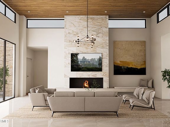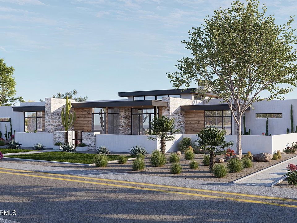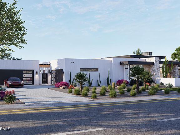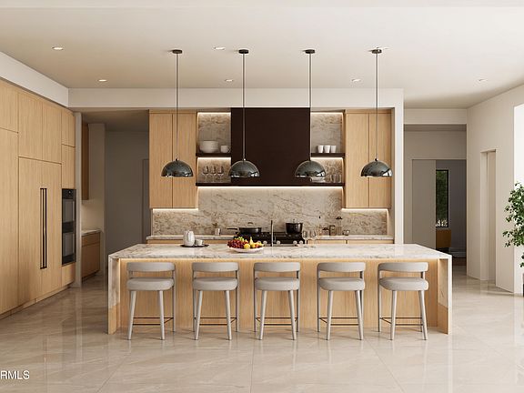 Stunning rare new build on just shy 1 acre in desirable Scottsdale neighborhood!  Ready June '25. 5,900 sf Main house 4 bed/5 ba + Office (or 5th bed/gym) and a detached 800sf 1 bd/1ba Casita. Elevated designer finishes by Janet Brooks Design. Rift cut oak cabinetry, large format soft beige tile, pecan colored wood floors - perfectly coordinated with ''wow'' features, + 200 bottle glass wine refrig. Separate kids living area & bedrooms. Backyard with Ramada + Fireplace overlooking the extended pool. Cook's kitchen with private back kitchen for storage. Laundry room of dreams with island, 2 W/D units and dog wash. Primary Suite & Office located on own side of house. Luxury primary bath has tub, shower & spacious closet with double doors. Office has own front entrance and patio. Won't last!