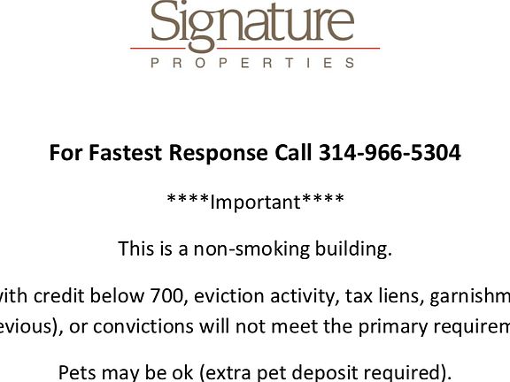 This is a NON-SMOKING building. NO smoking of ANY KIND will be tolerated. Thanks for understanding Applicants with credit below 700, eviction activity, tax liens, bankruptcies, garnishments, or charges/convictions (current or previous), will not meet the primary requirements.