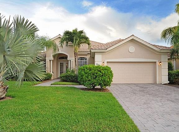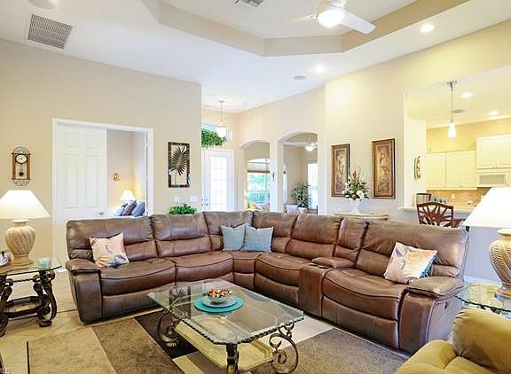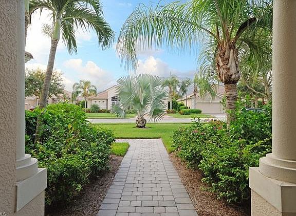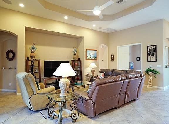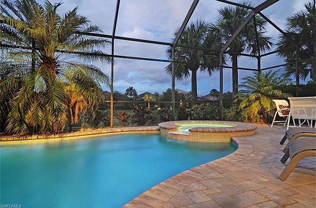 This is the perfect home. Imagine a 2 bedroom, 2 bathroom water front home, on a lovely tree lined street in a quiet neighborhood. The home has a large den, that can also be used as a third bedroom, and a formal dining area that doubles as a living room. The free form salt water pool and spillover hot tub overlooks the long winding lake and beautiful palm trees. This home features tile floor laid in the diagonal, brick paver patio, a new Air Conditioner, and electric hurricane shutters. Now imagine that this home is walking distance to shopping centers, restaurants and banks, and only 7 miles from the gulf of mexico. Call to set your personal showing today.