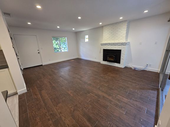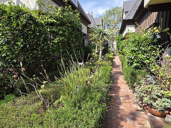 Charming English Tudor style Townhouse with 2 bedrooms & 2.5 baths, located in a quiet, intimate 8-unit complex and completely recently remodeled. This front unit has tasteful finishes and lots of attention to detail. The downstairs space has wood and tiled flooring and a gorgeous cook's kitchen w/ stainless steel appliances, engineered stone counter tops and an amazing amount of cabinets. Also downstairs, a convenient powder room & a laundry closet with stacked washer/dryer. Sliding glass doors lead to a private patio with room for outside dining. There is a cozy fireplace in addition to newer central heat & air. Upstairs are 2 bedrooms w/ hardwood flooring and 2 beautiful bathrooms. The engaging primary bedroom has an ensuite bathroom & walk-in closet. Pet friendly. There are 2 off-street tandem covered parking spaces w/ storage locker & an additional secured storage space off the patio. Six blocks to the beach and walking distance to shopping and eateries. Don't let this rare find get away!