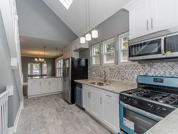 Absolutely stunning REHABBED Brick Bungalow featuring 4 bedrooms , 2.5 baths, PLUS an office on main level. Beautiful hardwood flooring in living room and dining room, large new windows, bright and cheery atmosphere in every room you enter. Crown molding adds a touch of elegance to each room. Kitchen has been completely remodeled with 42 inch white cabinets, double sink, granite counter tops, SS appliances, modern back splash vaulted ceiling with a skylight!! 1st floor bedroom and bath. Ceiling fans as well. Bathrooms are all a great size with high end finishes and amazing tile work. Retreat to the 2nd level MASTER SUITE with another full bath. Master bedroom also has a skylight !! Even more space in the finished basement with a large carpeted family room, additional bedroom and laundry room. Much attention to detail has been put into this home. So bring your buyers it won't last long on the market.