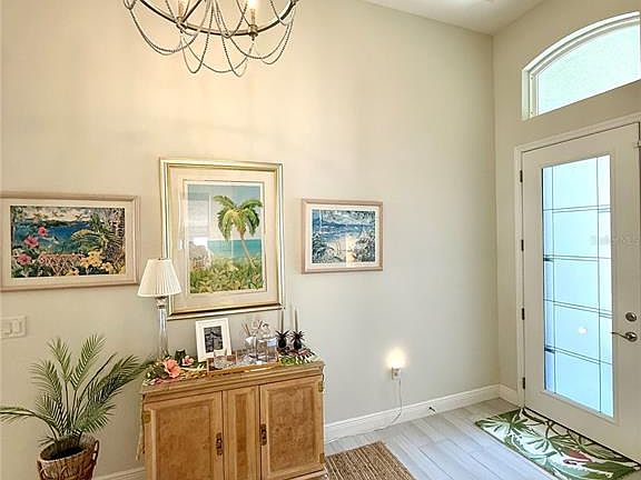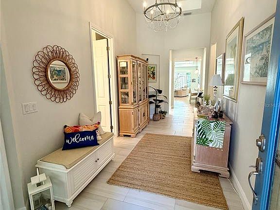 Welcome to this truly breathtaking home! Recently constructed in 2022, this property features exceptional upgrades and designer enhancements. The spacious two-bedroom, two-bathroom home encompasses 2,161 square feet of living space. As you approach the property, the impressive curb appeal, characterized by stone accents and a covered entryway with a modern glass insert, is hard to overlook. Upon entering, you will be greeted by the grandeur of 12-foot, tray ceiling in the foyer and beautiful tiled flooring that seamlessly extends throughout the main living area. The gourmet kitchen is a culinary enthusiast's dream, equipped with upgraded smart Wi-Fi appliances. Imagine operating your built-in oven, microwave, or gas range with just the touch of a button. The natural color palette is complemented by elegant quartz countertops, stylish backsplash, and a breakfast bar illuminated by pendant lighting. This open floor plan facilitates effortless entertaining, with the dining area and living room flowing harmoniously together. The inviting living room is accented by a tray ceiling giving it that extra designer touch and offers access to the recently added Florida Room / Sunroom. Enjoy the abundant natural sunlight that fills the room while staying comfortable. A versatile bonus room provides ample options, whether for an in-home office, crafting space, or the potential conversion into a third bedroom if desired. The primary bedroom, located at the rear of the home for added privacy, boasts two walk-in closets and an ensuite bathroom with dual sinks, shower, and a separate garden tub for relaxation. An additional generously sized bedroom ensures ample space for guests. The interior laundry room is thoughtfully designed to meet all your needs, featuring a built-in sink and cabinetry that enhance organization and efficiency. This residence is nestled in the 55+ gated community of Lakes of Mount Dora, which features an array of amenities, including a massive clubhouse, resort-style pool, gym, billiards, pickleball, tennis courts, walking trails, and much more. Conveniently located near the charming downtown area of Mount Dora, dining, shopping, and 441 plus 429 to get around town. Call now to schedule a viewing and discover the beauty of this wonderful home.