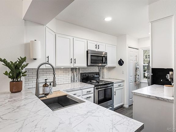 *$7,500 Seller Credit for any buyer that submits an acceptable offer by 10/17* Welcome home to this stunningly renovated townhome in Highland View! Situated conveniently near University and C-470, this residence is surrounded by a wealth of amenities, including top-notch shopping, dining experiences, and vibrant entertainment options like Trader Joe’s, Whole Foods, First Watch, Indulge Bistro & Wine Bar, and several expansive parks such as Cherry Knolls, Arapaho Park, and Sand Creek Park. Upon entering, you'll be captivated by the elegantly redesigned kitchen and dining area. The kitchen boasts custom backsplash, sleek white cabinetry, and high-end stainless steel appliances, creating an inviting space for cooking and dining. Upstairs, discover the spacious master bedroom with its own private access to a full bathroom. Adjacent to the master, the second bedroom offers ample space and comfort. The lower level impresses with a generous living room featuring tall ceilings, ideal for a home office setup. Completing this level is a convenient half bathroom and access to an outdoor patio with additional storage, perfect for relaxation and entertaining. Don't miss the opportunity to make this meticulously updated townhome your new sanctuary!