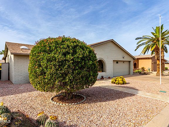 Gorgeous move in ready 2 bedroom 1.75 bath home on a Cul-de-sac.This tastefully decorated and furnished property has the ideal floorplan with split bedrooms.The large Arizona room offers additional space for entertaining. Kitchen has stainless steel appliances, laminate counters, a breakfast bar and a nice dining area Bathrooms updated with quartz vanities and updated tiled shower in the primary bathroom.Smooth ceilings. Roof 2019.AC 2011.Hot water heater 2025. Washer & dryer inside new 2024.Dual pane windows. Water softener. Nice front porch and a covered back patio with a fire pit and a hot tub to relax in. Active 55+ Gated Community FOUNTAIN OF THE SUN! Enjoy this Country Club & Golf Club community. Lots of planned activities.