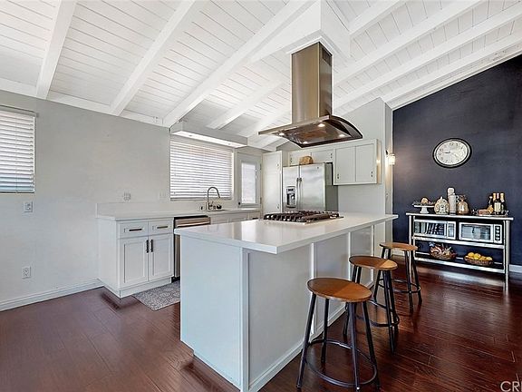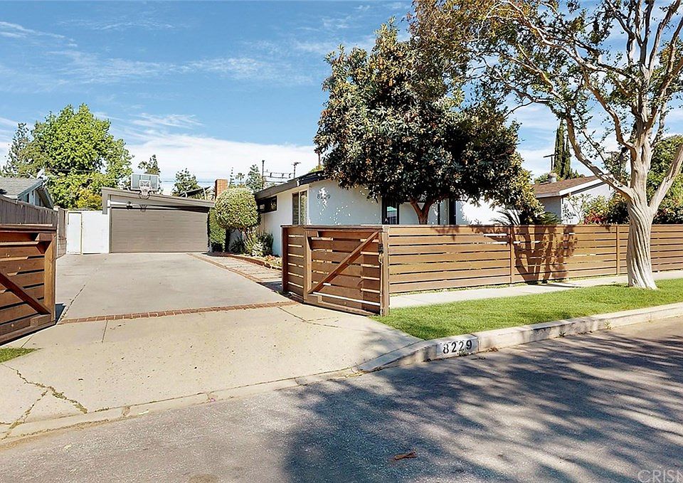 Perfect Mid-Century Pool Home! Northridge Adjacent - 4 bedroom including master with en suite. Gated, enclosed usable front yard with long driveway for plenty of parking space. Walk into a very open floor plan living, kitchen and dining entirely open with gorgeous ceiling high windows overlooking the backyard and bright blue pool! Glass doors can be opened up to tie the indoor and outdoor spaces. Updated kitchen with huge island. Front room can be used as an office with built-in wall unit. Bedrooms also feature tons of windows bringing in tons of natural light. All rooms show off beautiful beamed ceilings. This delightful home offers everything with an amazing floorplan, sought after mid-century style and tons of outdoor living space with gated pool! Come make this your new home!