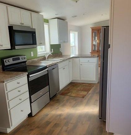 An opportunity to own 1/3 of an acre for an amazing price! This manufactured home sits on a permanent foundation and was remodeled in 2018 to include new siding and windows, a new roof and gutters in 2017, and new furnace and AC in 2018. Open concept living area, with updated kitchen and appliances. Vinly flooring in main areas, and carpet in bedrooms. This home features three bedrooms and two bathrooms with an attached two car garage. Schedule your showings today!