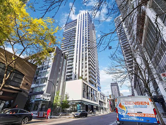 This is the best 1 Bedroom + Den home in the entire building, offering 677 sq.ft. of thoughtfully designed space. The den is large enough to fit a twin bed, making it perfect for guests or a home office. Enjoy numerous upgrades throughout, including solid wood doors, a French-door refrigerator, heated bathroom flooring, and a full smart home system that enhances everyday comfort and convenience. The modern kitchen features quartz countertops, porcelain backsplash, and premium Bosch appliances with a gas cooktop and convection oven. The open-concept living area showcases wide-plank laminate floors, floor-to-ceiling windows, and north-facing views. Additional highlights include 1 parking stall, 1 storage locker, and visitor parking with EV chargers. Located in the heart of Dow