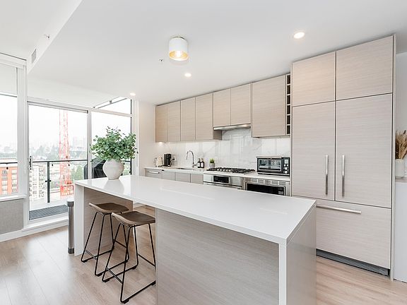 Sky-high luxury living at Ovation, in the heart of downtown New Westminster - NO GST! This beautifully updated 3 bed, 2 bath residence features 2 side-by-side parking stalls including an EV charger, 3 storage lockers, and 1245 sq/ft of luxurious living space. Incredible open layout, A/C, and breathtaking views through the oversized windows. The 458 square foot wrap-around balcony is perfect for entertaining, or morning coffee as the sun comes up. The gourmet kitchen offers a sleek design, integrated appliances, quartz counters and contemporary finishes. The spacious primary connects to the spa-like ensuite and large WIC. Outstanding amenities including a rooftop gym, hot tub, clubhouse, concierge services and more. Conveniently located within steps from Skytrain, shopping and restaurants.