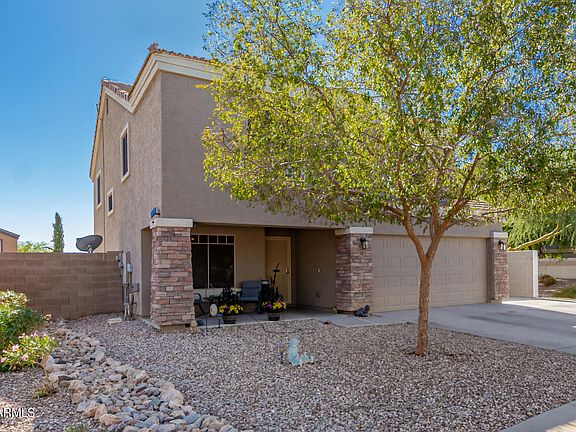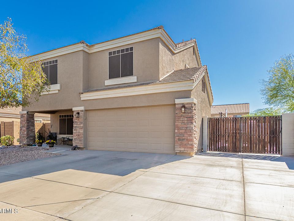 Welcome to 823 E. Dragon Springs Drive, Casa Grande, AZ! This stunning 4-bedroom home with a den and loft offers the perfect blend of comfort and style. From the moment you arrive, you'll be impressed by the charming curb appeal, featuring a stone facade, a cozy front porch, and a 2-car garage. Inside, you'll find soaring vaulted ceilings, beautiful tile flooring, and elegant plantation shutters throughout. The spacious downstairs includes a bedroom with a Murphy bed, a full bathroom, and a bright, open great room that offers seamless access to the backyard. The kitchen is a chef's dream, with abundant wood cabinetry, stainless steel appliances, a pantry, and recessed lighting. Upstairs, the versatile loft provides endless possibilities, whether as a game room, home office, or additional living space. The serene primary suite, accessed through double doors, boasts an abundance of natural light, a large walk-in closet, and an ensuite bath with dual sinks. Outside, the well-sized backyard is perfect for entertaining, featuring a new pool pump and ample space for gatherings. Additional upgrades include a brand-new HVAC system, ensuring year-round comfort. This home has it alldon't miss out!
