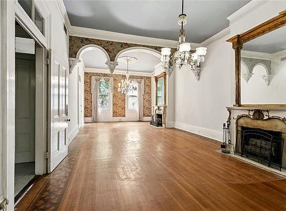 Ornate chandeliersWide-plank hardwood floorsIn-unit laundryEn-suite bathOrnamental detailingFireplaces and mantels