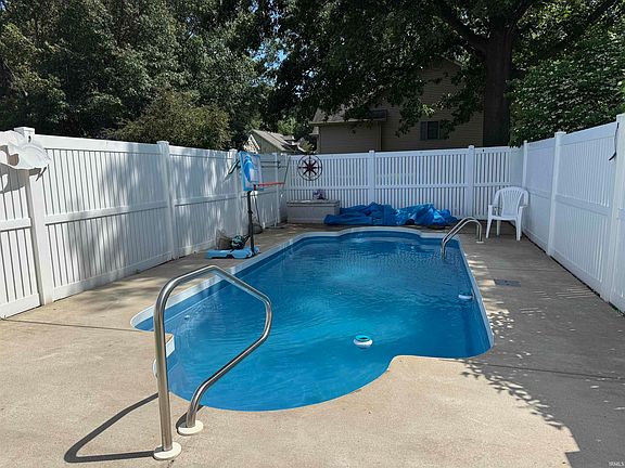 One level living in Hunters Crossing with a pool! Move in ready and updated: 2 bedrooms 2 baths with a bonus office and an in ground fiberglass pool just in time to cool off during the hot summer days! The home and pool sits on 2 lots and has a bonus extra full lot to the west giving you options to expand. All one level home with new neutral colored LVP flooring throughout the home. All heat/cooling vents have been professionally cleaned and furnace filter changed. Enclosed porch overlooks the new deck. Lots of closets and a main floor laundry includes washer/dryer. Great room has vaulted ceilings and LVP flooring. Kitchen has oak cabinetry, island with sink, roll out cabinetry shelves, walk in pantry, and includes refrigerator and newer gas range. Primary bedroom has tray ceiling, walk in closet, tiled floor and tiled tub/shower. Attic over garage houses furnace and gas water heater, and lots of storage space. Also has a storm closet in garage. All pool pumps, equipment and solar and winter cover included. City water and sewer but not in city limits. Great location close to schools, shopping and US 31.